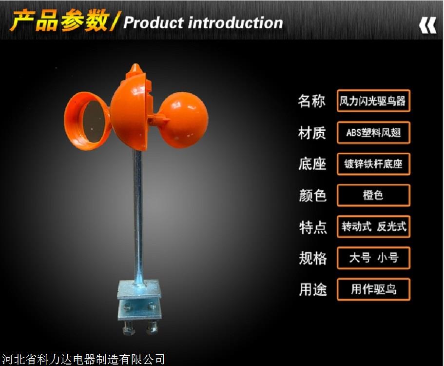 科力达品牌风车式驱鸟器的驱鸟功能是基于鸟禽怕光的特性实现的。该装置采用不锈钢材料制作而成,反光效果非常好,独特的风斗形设计以及上等的转轴使其在微风下就可以启动,实现了360°反射角,无驱鸟盲点的功能。另外,该装置选材精良,基本不用维护,使用寿命可达8年以上。是经济适用的驱鸟产品之一。