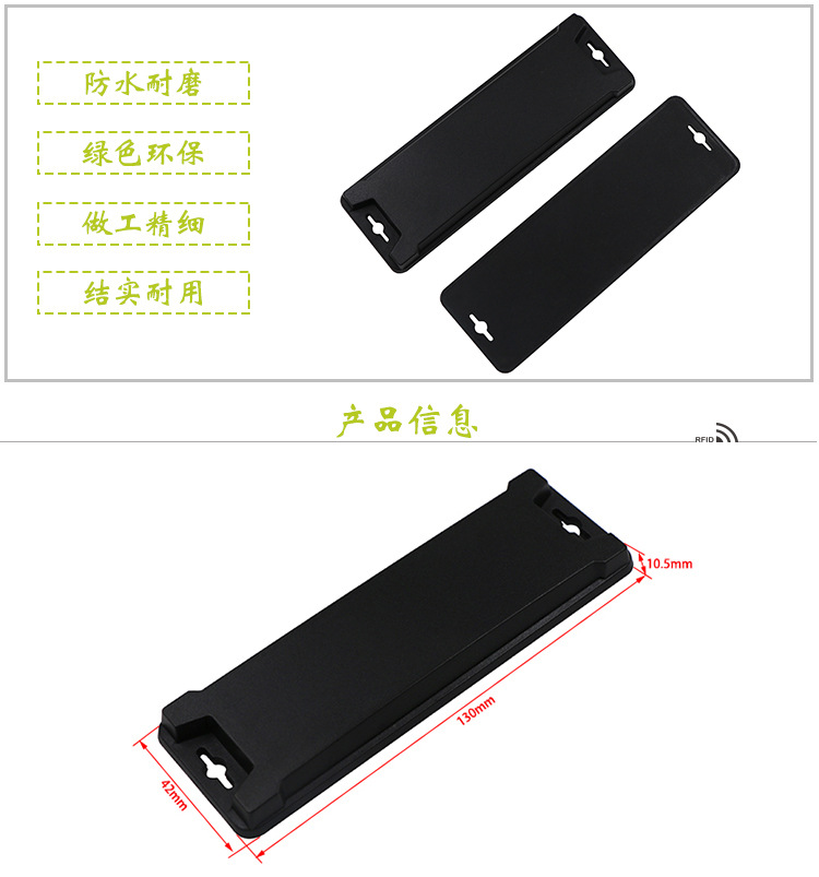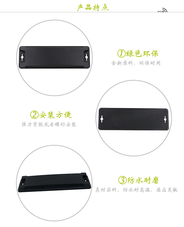 | 产品简介 | ABS抗金属标签是一种采用特殊工艺封装成的特种电子标签,标签坚固、耐高温、性能优。 我司现有多个外观的标签,可以满足大部分的应用需求,同时也支持个性化定制。 标签广泛应用于资产管理、仓储管理、物流管理、制造过程管理等不用的领域。