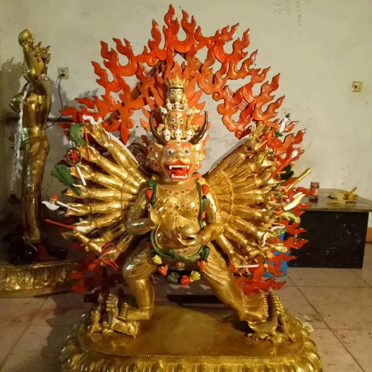 大型藏传铜佛像雕塑 彩绘神像铜雕塑 贴金藏佛摆件