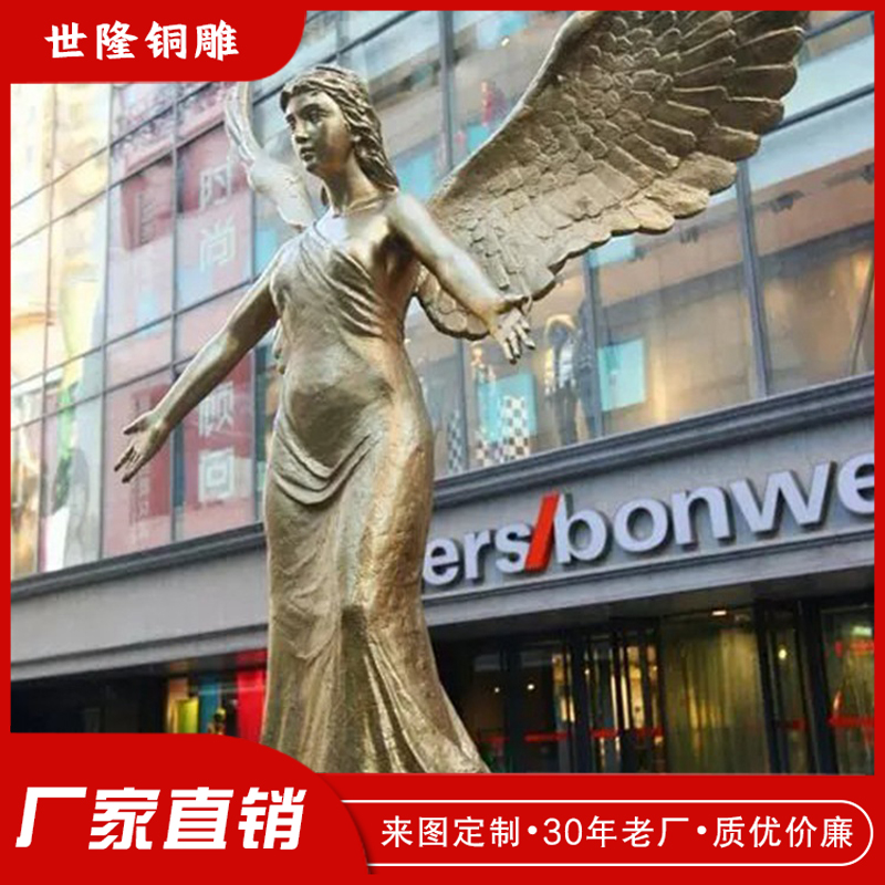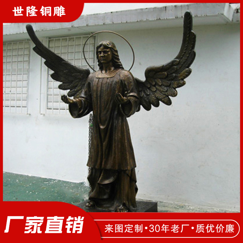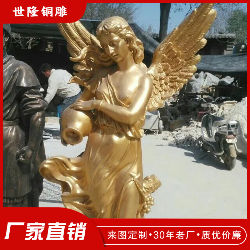 铜雕天使,本义指上帝的使者。代表圣洁、良善,上帝安拉旨意的传达者、为上帝服役的灵、受上帝差遣保护信众不被恶魔侵扰的保护神。它们是服侍上帝安拉的灵。上帝安拉差遣它们来地球帮助需要拯救的人、传达上帝安拉的意旨,是上帝安拉在地上的代言人。天使的外形有时是人形,身上发光,头顶有光环,有的长有翅膀。而在铜雕天使形象中,一般天使的人物形象多为孩子,代表着纯洁和善良。