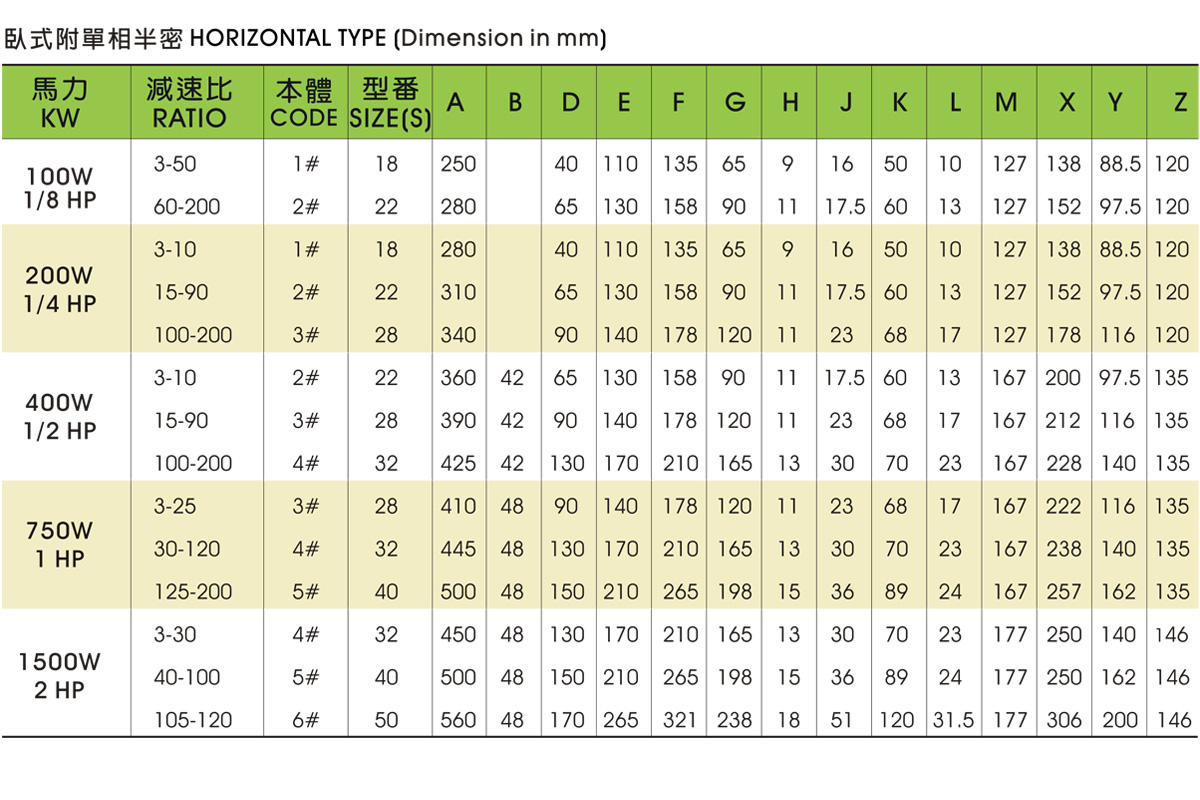 台湾CPG晟(城)邦齿轮减速电机 规格如下: