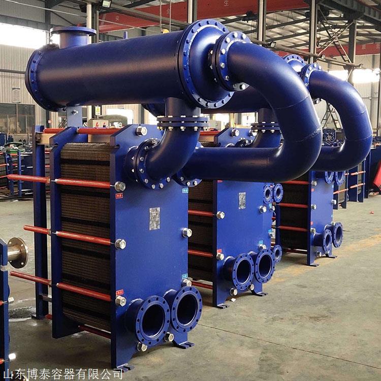 板式换热器是由一系列具有一定波纹形状的金属片叠装而成的一种高效换热器。各种板片之间形成薄矩形通道,通过板片进行热量交换。板式换热器是液—液、液—汽进行热交换的理想设备。它具有换热效率高、热损失小、结构紧凑轻巧、占地面积小、应用广泛、使用寿命长等特点。在相同压力损失情况下,其传热系数比管式换热器高3-5倍,占地面积为管式换热器的三分之一,热回收率可高达90%以上。