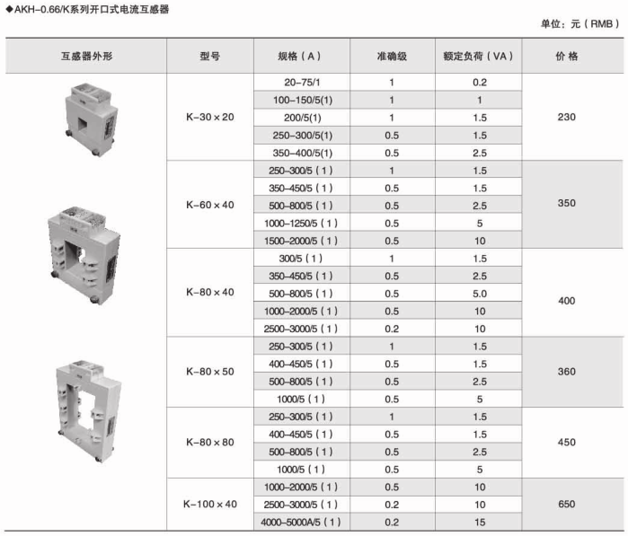 AKH-0.66K系列开口式电流互感器安装方便,无须拆一次母线,亦可带电操作,不影响客户正常用电,可与继电器保护、测量以及计量装置配套使用。