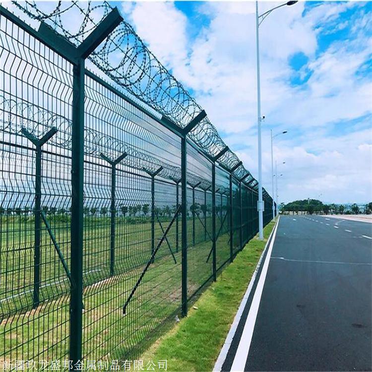 机场围栏网简介:是安全防盗连接件和热镀锌刀片刺笼组成是强度和安全防御性级别很高的隔离栅产品。近年来,机场围栏网被广泛应用在机场,军事基地等高安全场所。(如果在机场围栏网顶部加装刀片刺丝、刀片刺绳后又很好的增强了安全防护性能。)