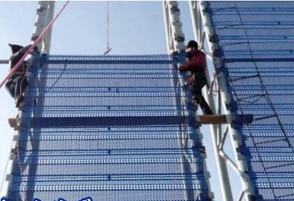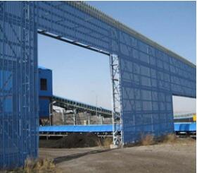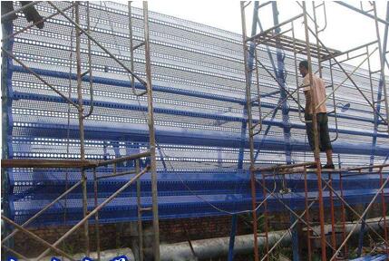 3、彩钢防尘网安装:使用寿命15~20年。使用环境温度:-40℃至 80℃,连接采用螺钉和压板固定。挡风抑尘扳的具体尺寸、弯曲度、开孔率应根据堆场的实际情况进行设计。