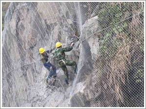 产品特性:用数股钢丝盘结成环形相互套接而形成的网。其作用是拦截落石防护能量一般为150kj--2000kj。