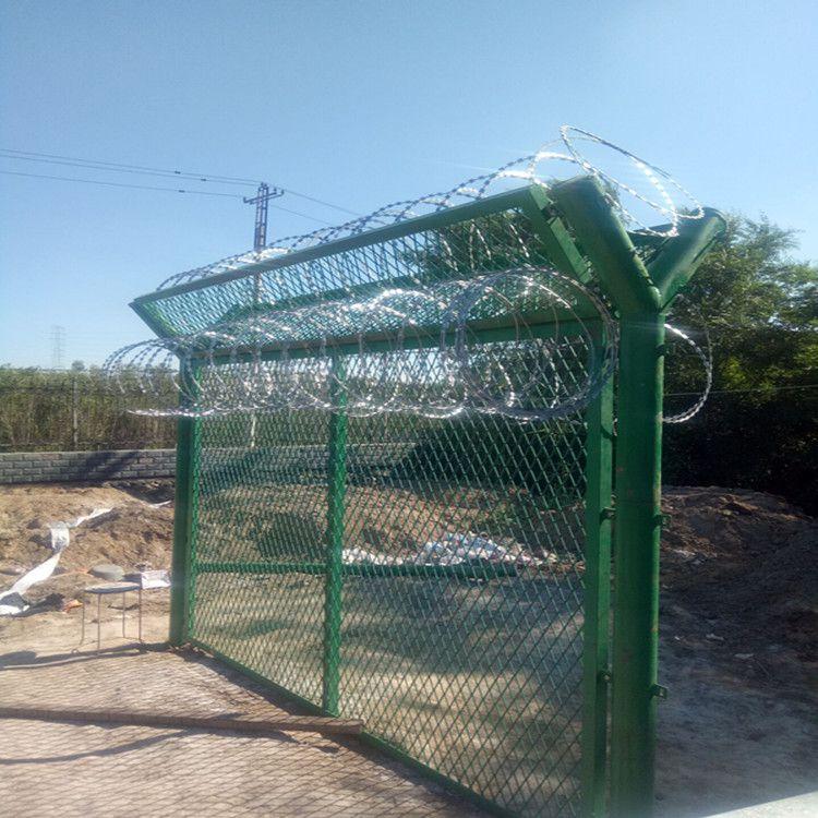 新疆机场围栏防护网从加工工艺上来分:机场编织防护隔离围界,机场焊接防护隔离围界、机场钢板网围界。机场飞行区围界采用物理围界阻隔(如单/双层金属围栏或砖墙并附加圈刺滚笼等),在这里我们详细说明一下飞行区围界阻隔网,机场物理围界围墙要求物理围界内侧、外侧的净高度应不低于2.5m,离地间隙不大于3cm。其中顶部防攀爬设施采用刺丝滚笼或刀片刺网等结构的围栏(墙)。