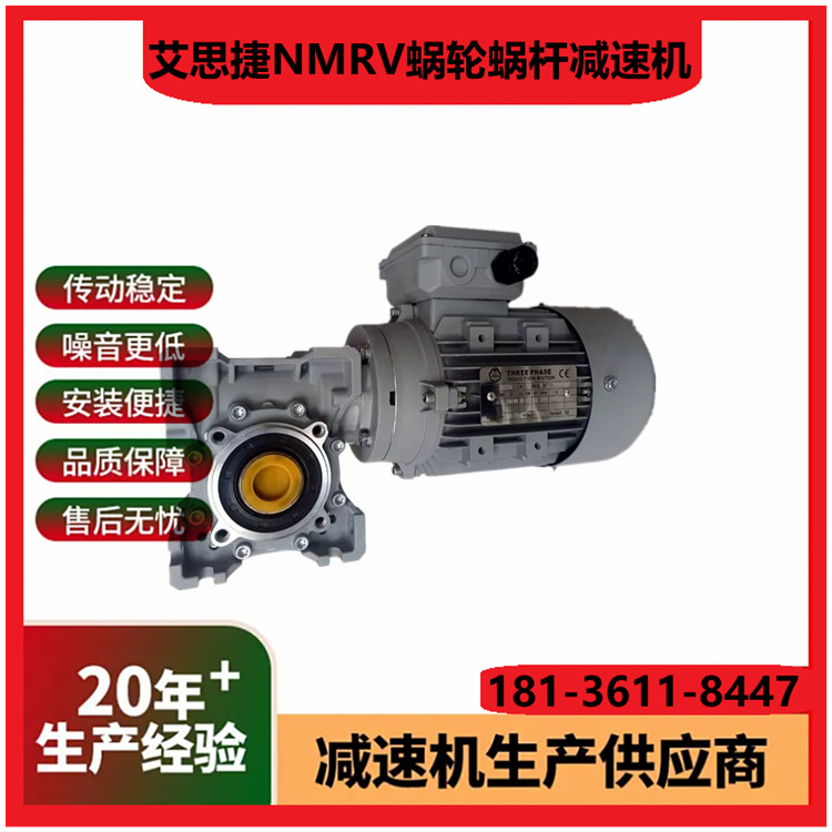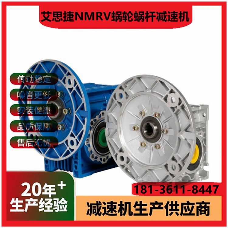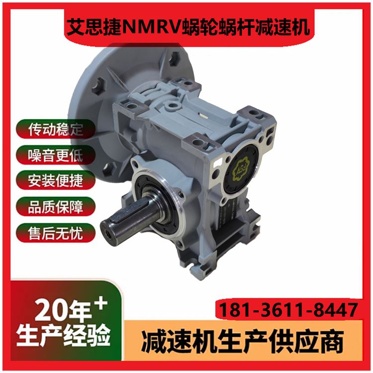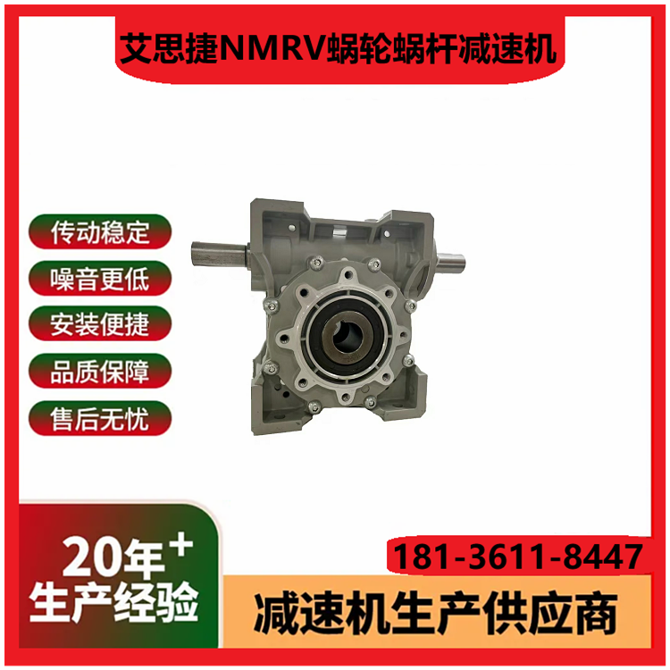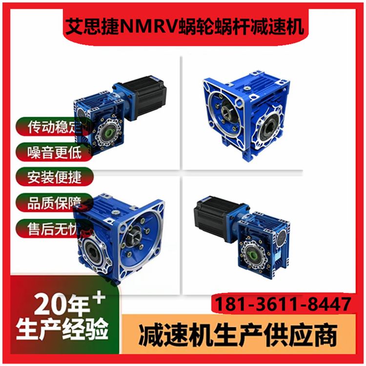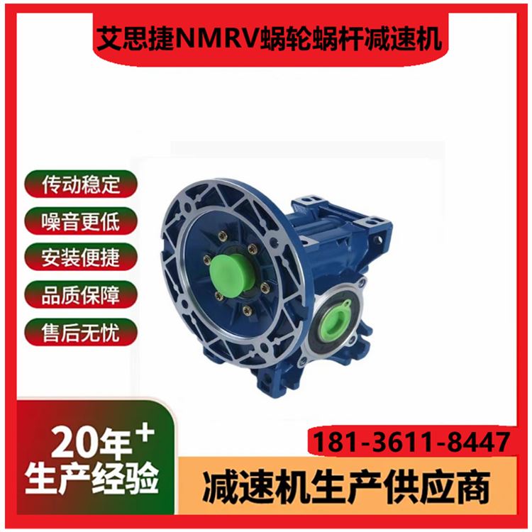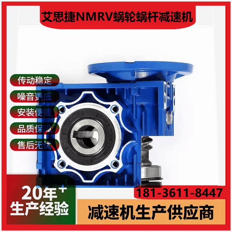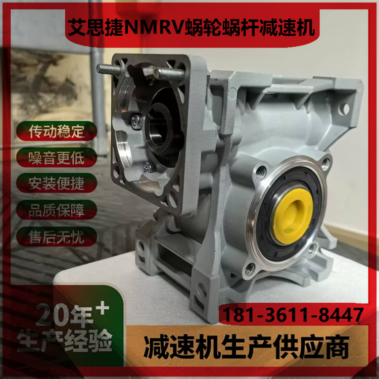1. 型号范围:涵盖NMRV/NRV系列,功率0.06 15kW,适配多种工业场景需求。 2. 传动比选择:单级速比5 100,双级可达2500,满足不同减速需求。 3. 输入方式:支持电机直联、轴输入或法兰连接,适配性高。 4. 输出轴形式:实心轴/空心轴可选,键槽或法兰输出,灵活匹配设备。 5. 箱体材质:高强度铝合金铸造,轻量化设计且散热性能优异。 6. 蜗轮材料:耐磨磷青铜蜗轮配淬硬钢蜗杆,寿命长噪音低。 7. 效率等级:单级传动效率达85%以上,双级效率稍低但更平稳。 8. 防护等级:标配IP55,可选IP65,防尘防水适应恶劣环境。 9. 润滑方式:出厂预加润滑脂,免维护设计或定期换油可选。 10. 安装方向:支持任意角度安装(M1 M6),空间布置灵活。 (注:参数基于常见型号整理,具体以实际产品手册为准。)