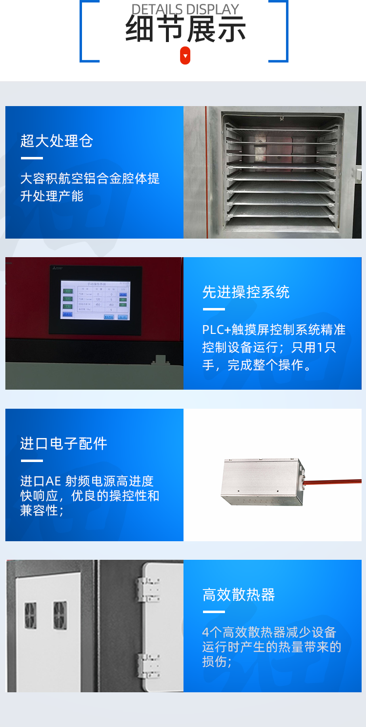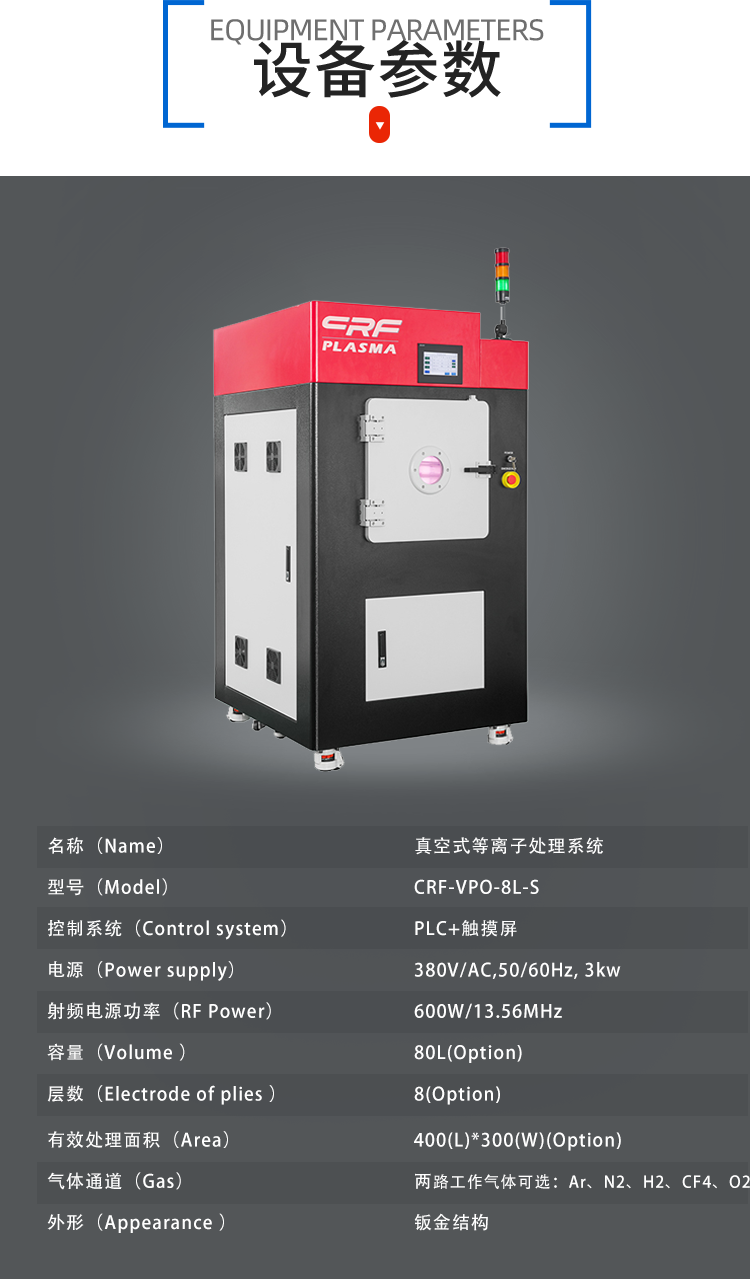 半导体IC领域,COB、COG、COF、ACF工艺,用于打线、焊接前的清洗;硅胶、塑胶、聚合体领域:硅胶、塑胶、聚合体的表面粗化、等离子刻蚀、活化。表面活化改性技术。