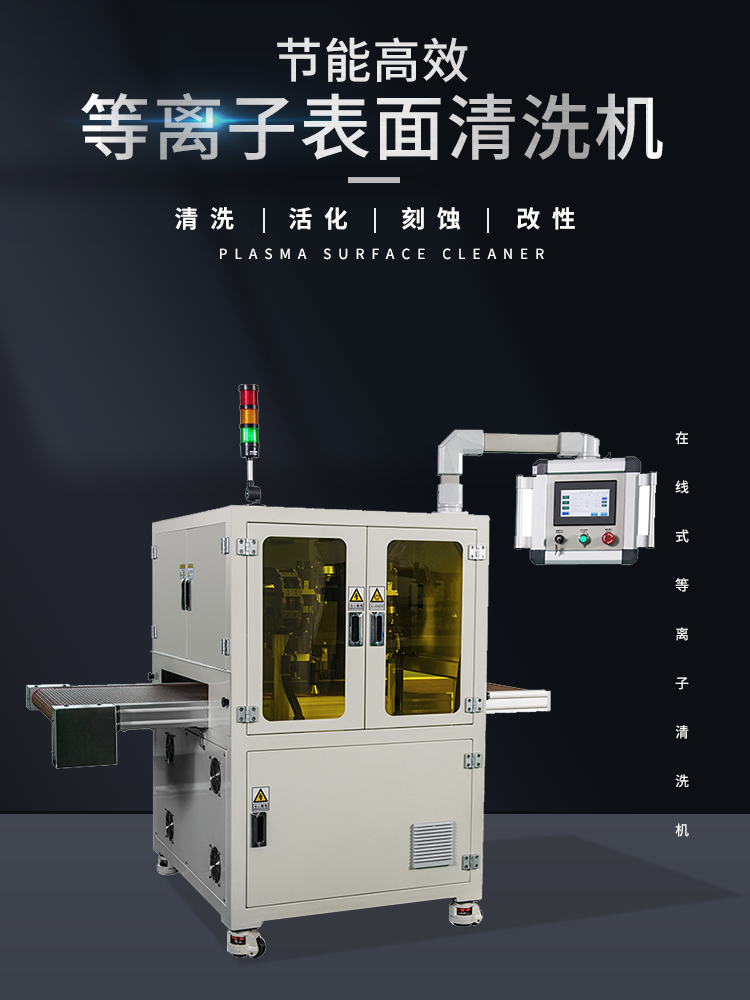 自动On-Line式等离子清洗机设备主要应用于电子行业的手机壳印刷、涂覆、点胶等前处理,手机屏幕的表面处理;连接器表面清洗;通用行业的丝网印刷、转移印刷前处理等。