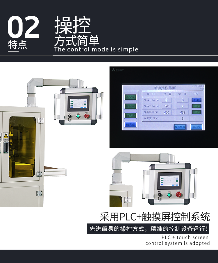 等离子清洗机设备配置运动控制平台, PLC+触摸屏控制方式,采用运动模组,操作简便;