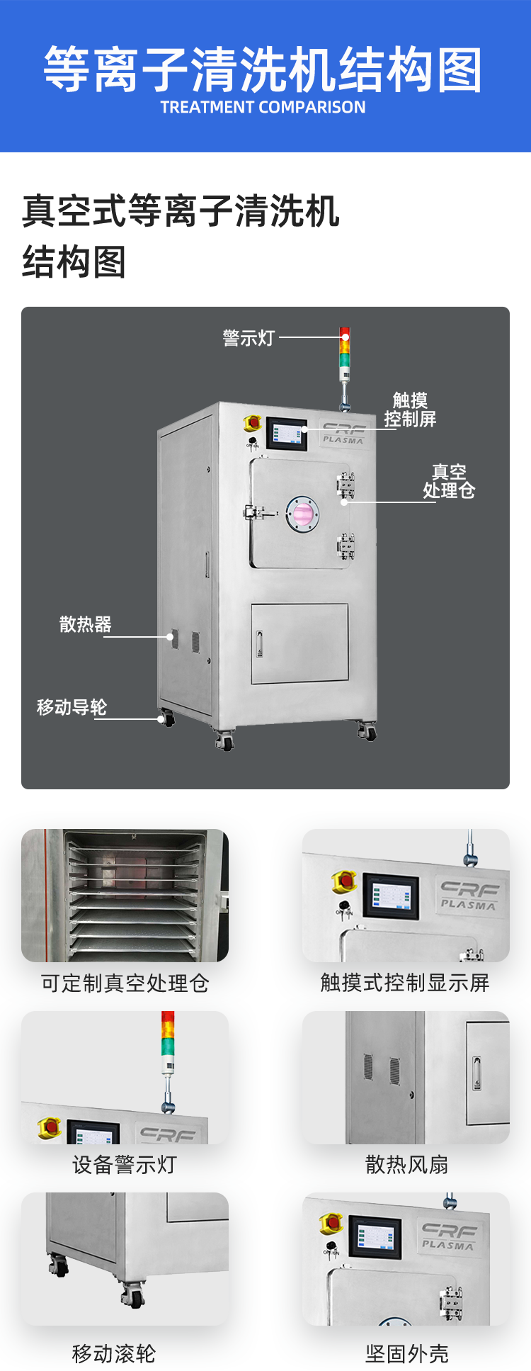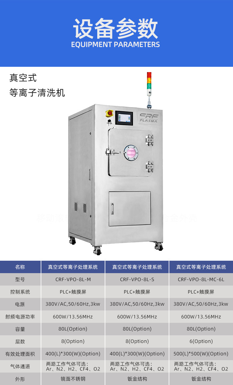 真空等离子清洗机设备适用于印制线路板行业,半导体IC领域、等离子硅胶处理、塑胶处理、聚合体领域,汽车电子行业,航空工业等。印制线路板行业:高频板表面活化,多层板表面清洁、去钻污、软板、软硬结合板表面清洁、去钻污,软板补强前活化。