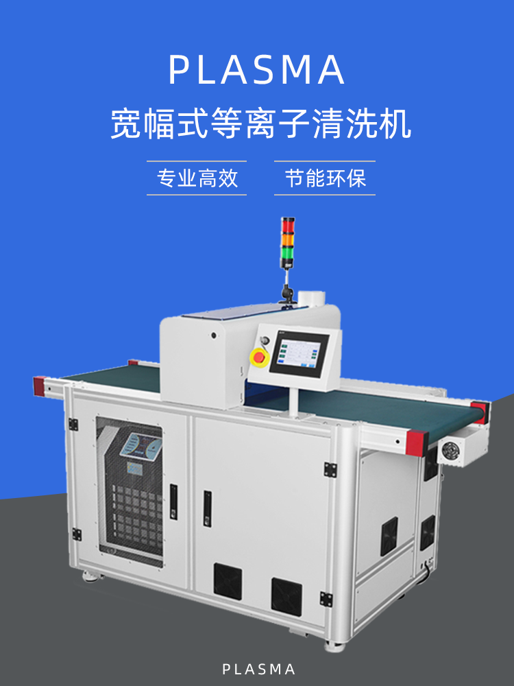 宽幅等离子清洗设备可以使用On-Line安装方式,电子和离子的能量可达10eV以上,材料批处理的效率可高于辉光放电装置效率10倍以上。