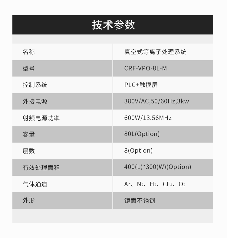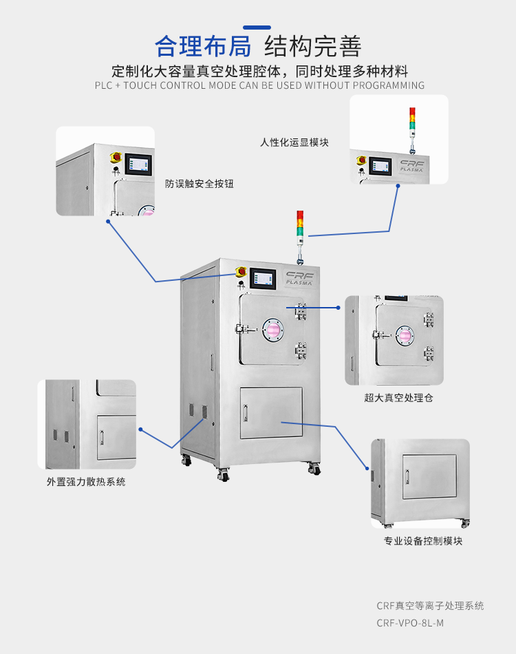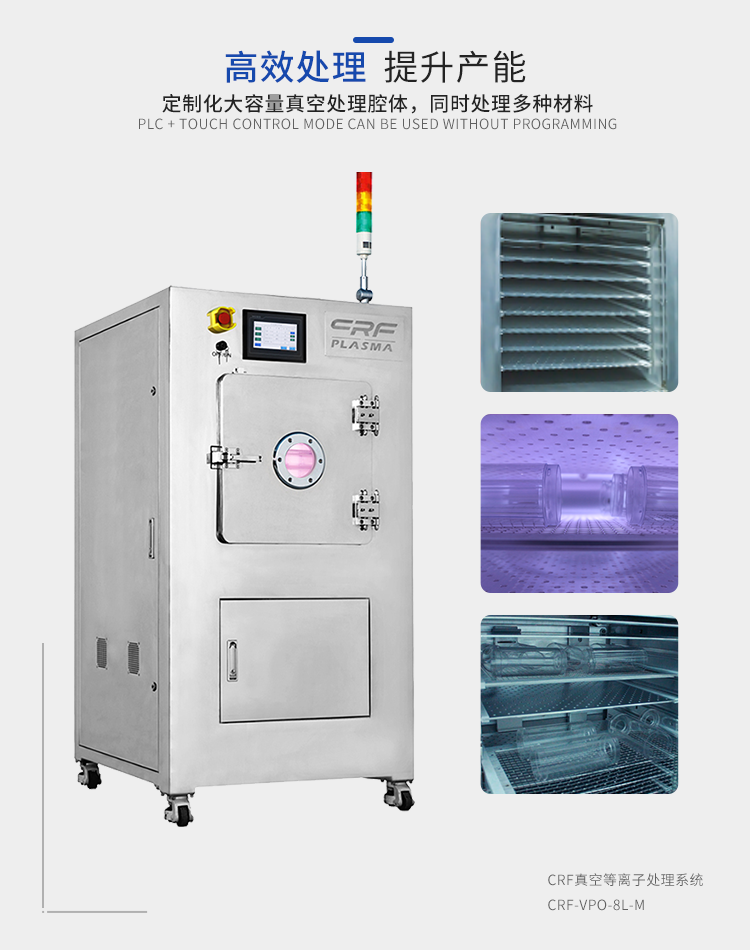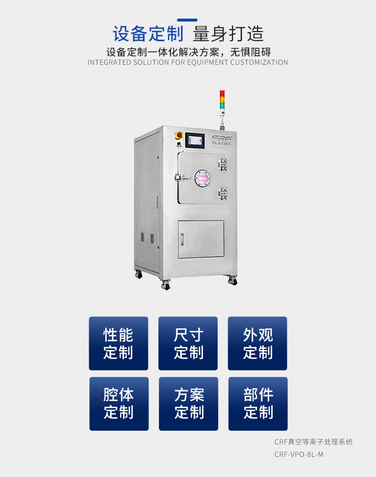 真空等离子清洗机适用于印制线路板行业,半导体IC领域,硅胶、塑胶、聚合体领域,汽车电子行业,航空工业等。印制线路板行业:高频板表面活化,多层板表面清洁、去钻污,软板、软硬结合板表面清洁、去钻污,软板补强前活化。半导体IC领域:COB、COG、COF、ACF工艺,用于打线、焊接前的清洗;硅胶、塑胶、聚合体领域硅胶、塑胶、聚合体的表面粗化、刻蚀、活化。