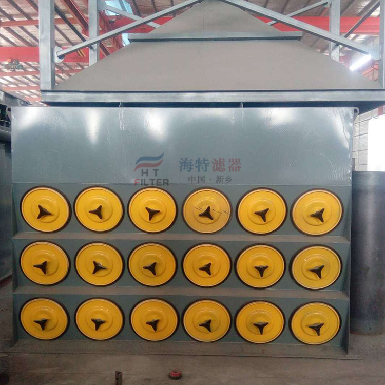 3、滤筒过滤层:根据粉尘的气体特性选用相符合材质的滤筒,含尘气体在进入除尘器后,通过滤材时,粉尘被截取在滤筒外壁。干净的空气进入滤筒内部,从排气口排出;