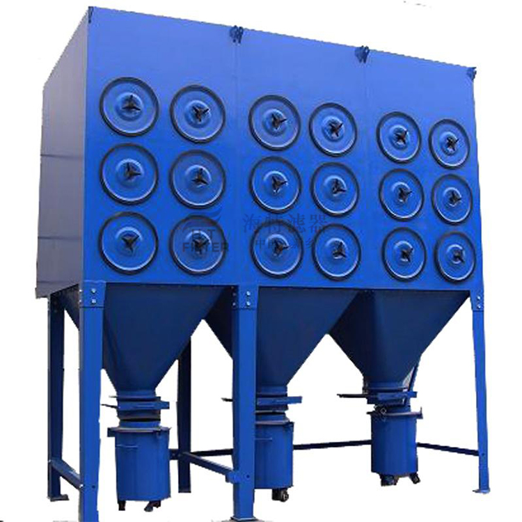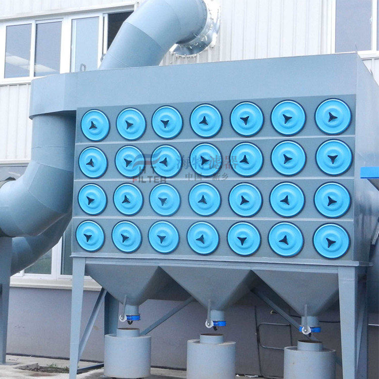 3、滤筒过滤层:根据粉尘的气体特性选用相符合材质的滤筒,含尘气体在进入除尘器后,通过滤材时,粉尘被截取在滤筒外壁。干净的空气进入滤筒内部,从排气口排出;