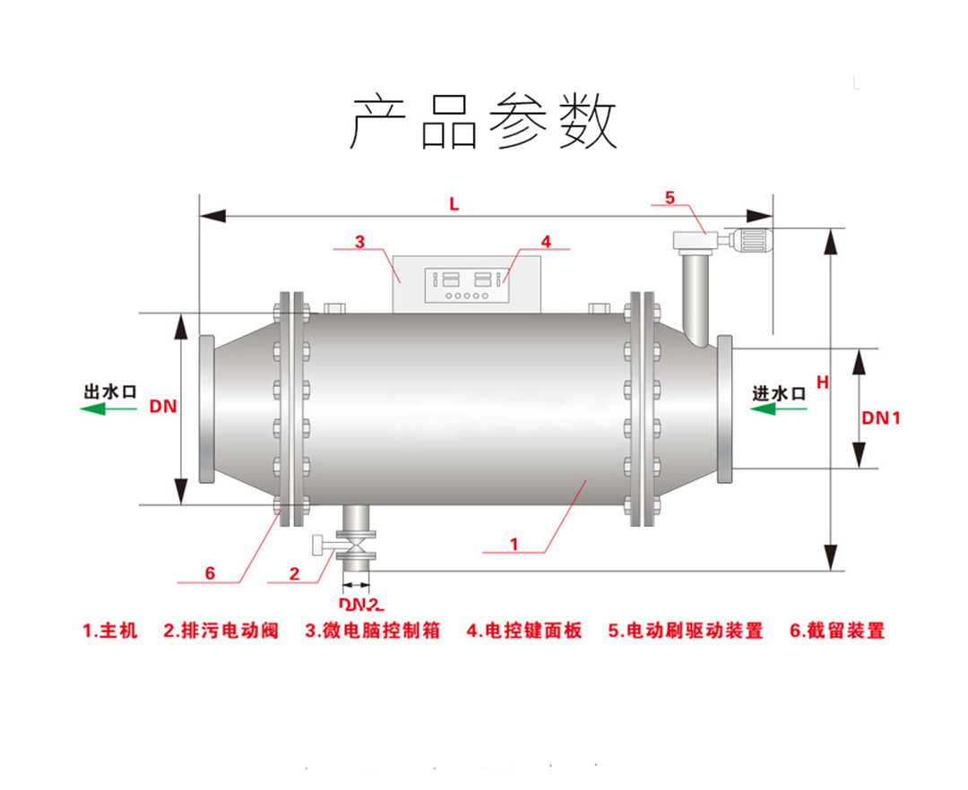 立式全自动水处理过滤器主要组件有:电机、电控箱、控制管路、主管组件、滤芯组件、316L不锈钢刷、框架组件、传动轴、进出口连接法兰等。自清洗过滤器克服传统过滤产品的纳污量小、易受污物堵塞、过滤部分需拆卸清洗且无法过滤器状态等众多缺点,具有对原水进行过滤并自动对滤芯进行清洗排污的功能。自清洗过滤器清洗排污时系统不间断供水,可以过滤器的工作状态,自动化程度很高。