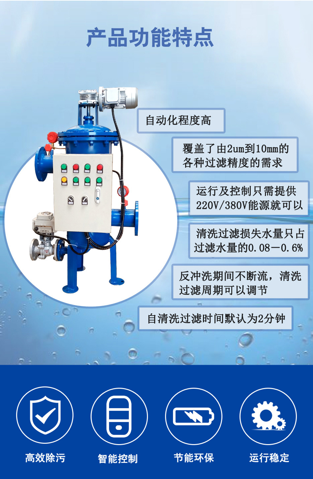 拦截水中杂质,净化水质,保护系统设备正常工作 |