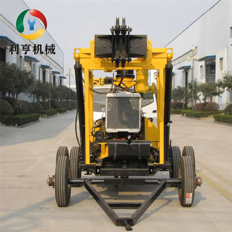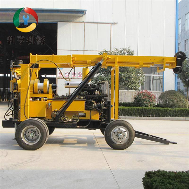 1、该钻机装有轮式行走机构及液压油缸支柱,整机搬迁方便,便于钻机的水平调整;
