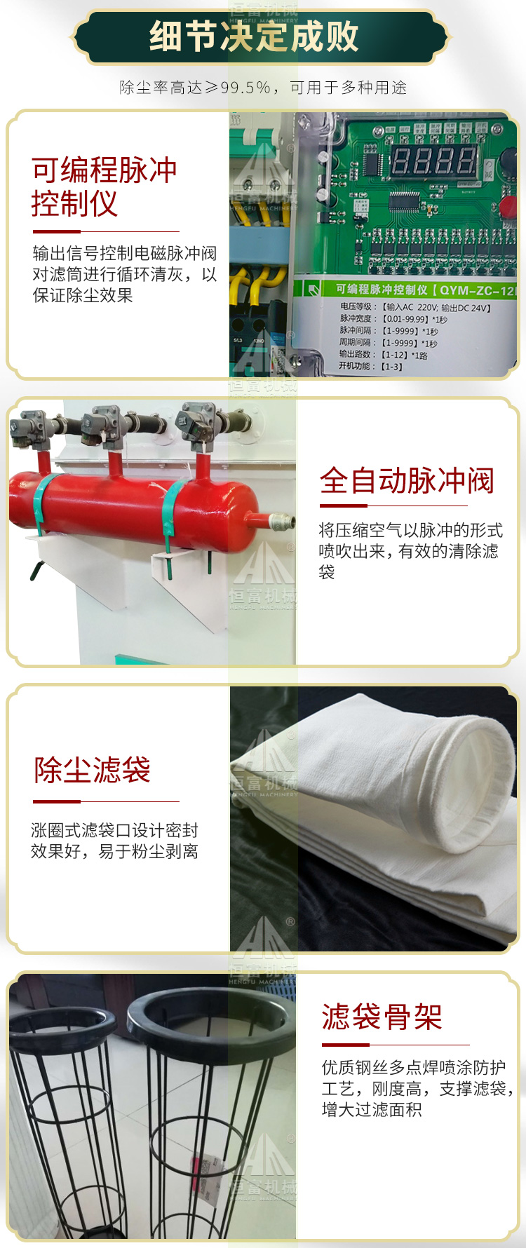 恒富机械脉冲除尘器 高效节能布袋式脉冲除尘设备 单机脉冲除尘设备 工业除尘袋 饲料除尘设备 脉冲除尘器厂家