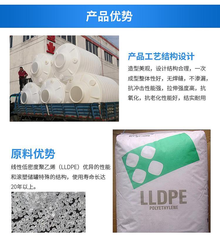 2、环保PE加药箱采用进口韩国进口644线性低密度(LLDPE)原料,韧性和强度均优于其他原料,符合中国食品卫生检测标准。