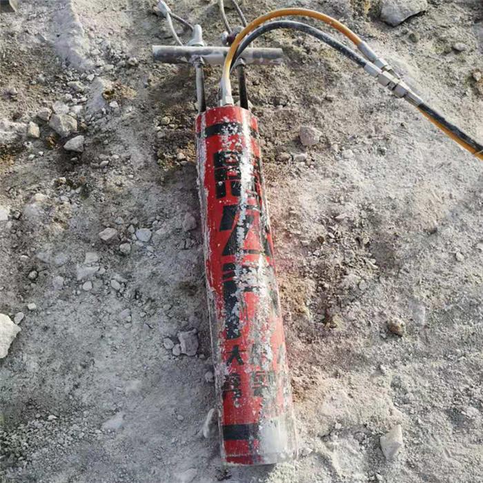 液压劈裂机工作原理是以高压油为能量源,由泵站输出的超高压油驱动油缸产生巨大推动力,使分裂机推动楔器使劈块向两边扩张,达到几千吨,经机械放大后在十几秒内轻而易举地从物体内部将一块几千吨的巨石分裂,并使物体按预定方向分裂。从而使坚硬而巨大的矿石从山体中分离。