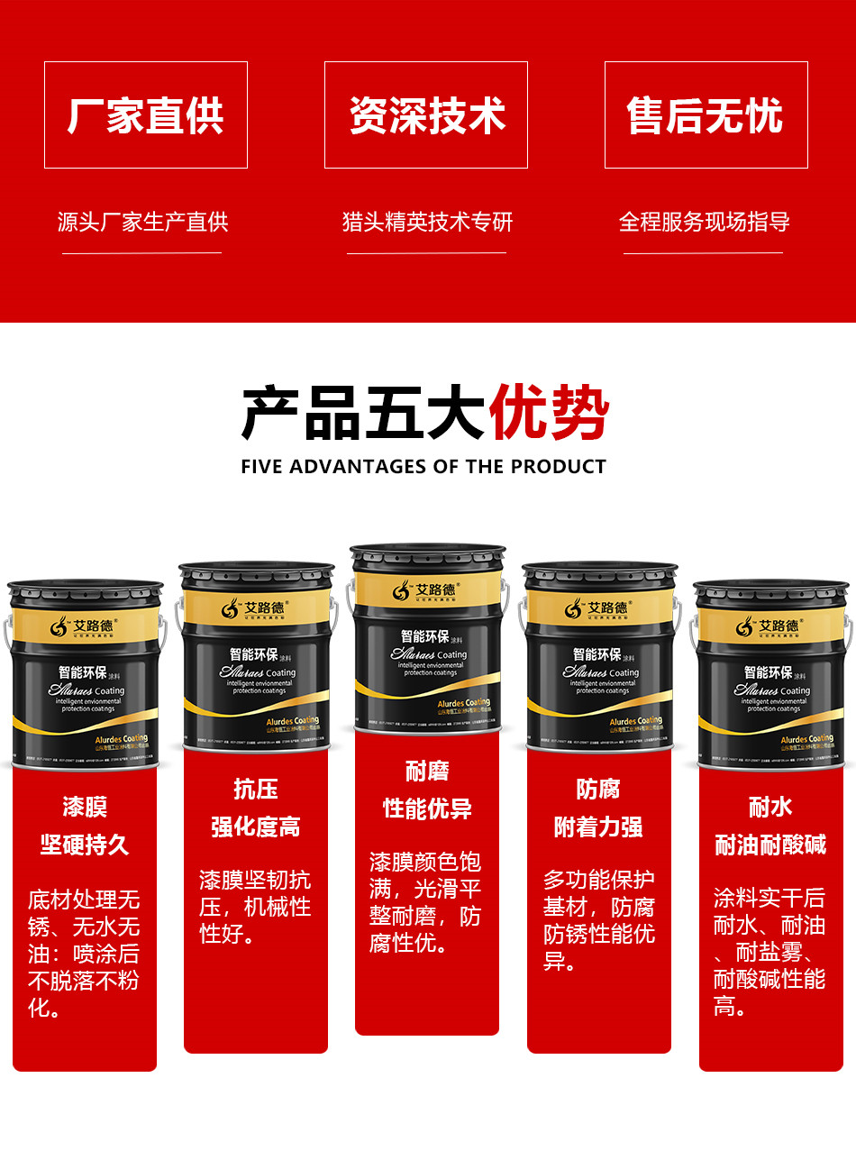6、 后道配套涂料:环氧云铁厚浆底漆、环氧沥青系列涂料、氯化橡胶涂料。