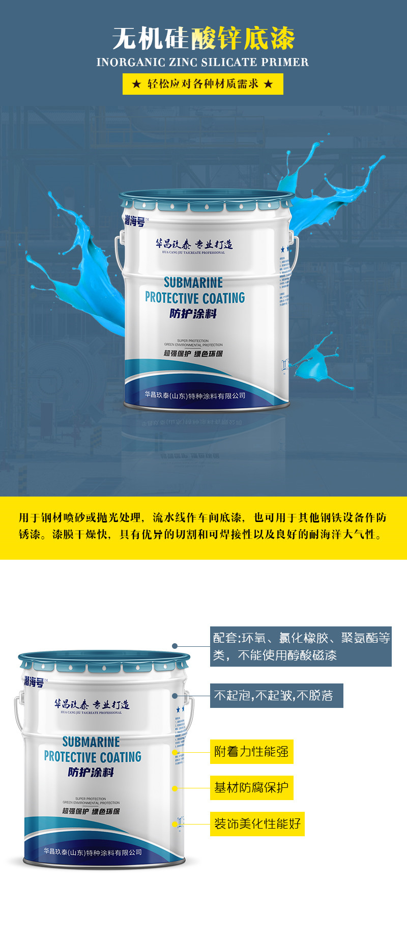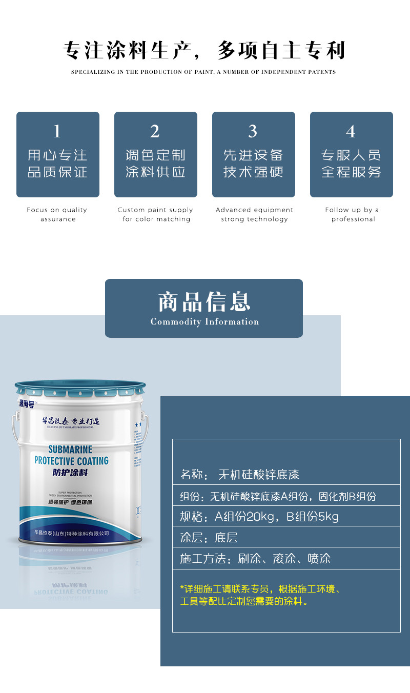 本产品由是硅酸盐、颜料、固化剂、填充料等制备而成的双组份涂料。