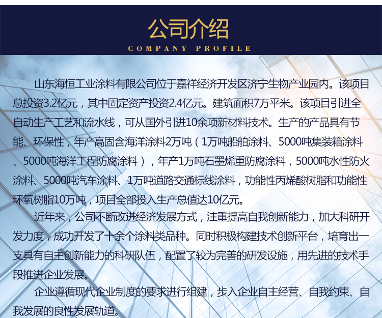 配套上涂:聚氨酯漆,丙烯酸聚氨酯漆,氟碳漆。