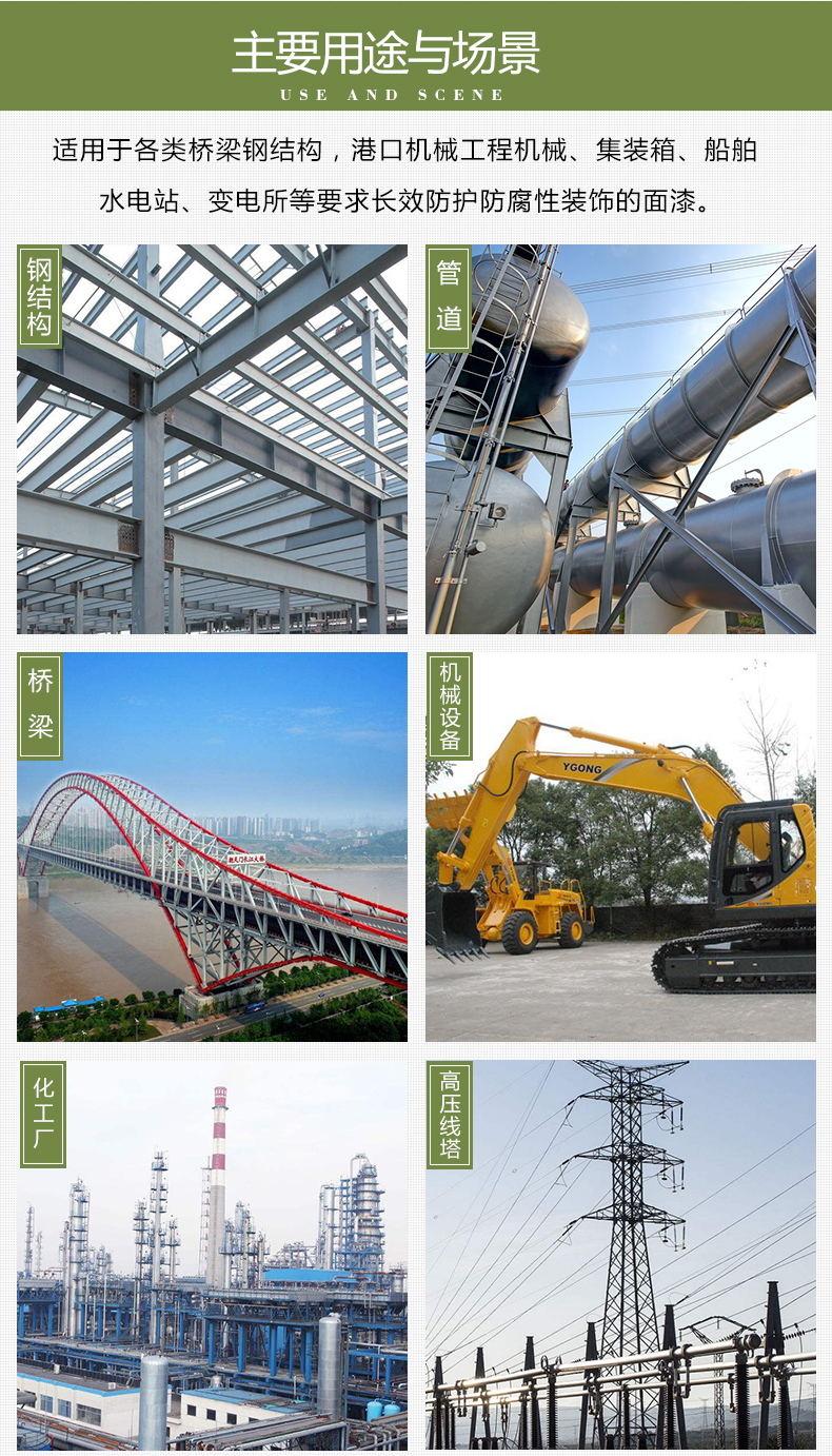 桥梁、船舶、海上石油钻井平台、港湾设备及一切喷砂后的底材