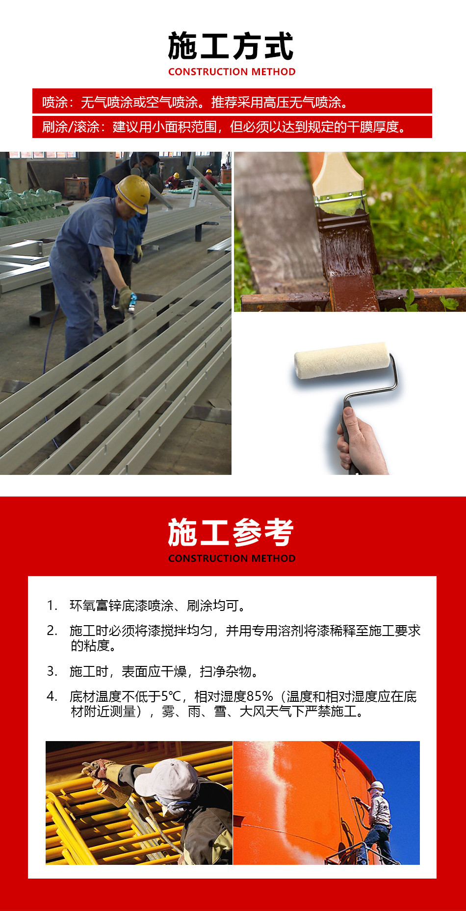 涂 装 方 法高压无气喷涂、有气喷涂、手工刷涂、辊涂