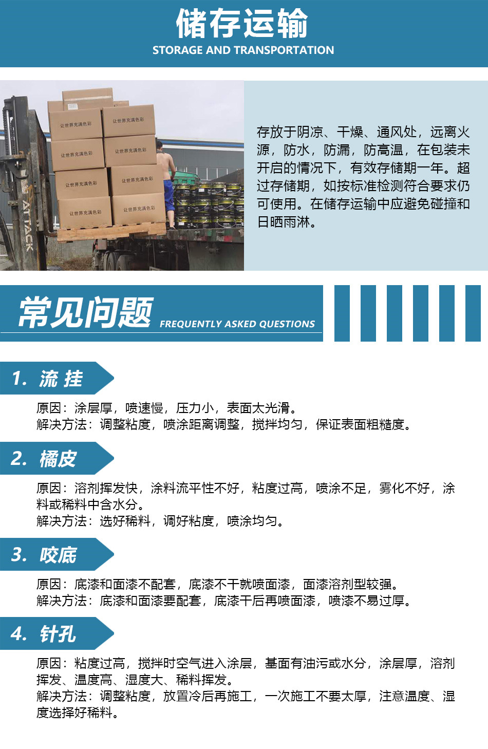 1、涂漆前要将被涂底材处理干净,严防水份、灰尘及其它污物存在以保证漆膜的附着力。