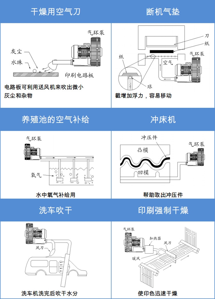 旋涡防爆高压气泵的用途:高压风机主要由下列六部分组成:电机、空气过滤器、高压风机本体、空气室、底座(兼油箱)、滴油嘴。高压风机靠汽缸内偏置的转子偏心运转,并使转 子槽中的叶片之间的容积变化将空气吸入、压缩、吐出。在运转中利用鼓风机的压力差自动将润滑送到滴油嘴,滴入汽缸内以减少摩擦及噪声,同时可保持汽缸内气体不回流,此类 高压风机又称为滑片式高压风机。高压风机输送介质以清洁空气、清洁煤气、二氧化硫及其他惰性气体为主。也可按需生产输送其他易燃、易爆、易蚀、有毒及特殊气体。因而能 广泛适用于冶金、化工、化肥、石化、食品、建材、石油、矿井、纺织、煤气站、气力输送、用于:化工厂,煤矿,隧道,锅炉,罐装,玻璃工业,通风排风,自动清洗,包装,鱼池供氧,曝气,垃圾分解,煤气输送,气体输送,环保养殖等。污水处理等各工业部门。