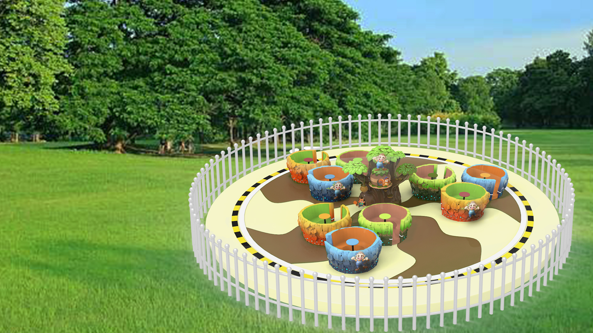 转转杯是游乐场经典项目。主要由大转盘、小转盘和转杯组成。大转盘上有三个小转盘,每个小转盘上又有三个转杯。转杯是游客的座舱,除绕自身旋转外,还绕小转盘转动,同时各小转盘又绕大转盘转动,游客坐在杯中,体验多重复合转动所带来的乐趣。每杯能坐四人,适合一家大小和不同年龄的游客游玩。