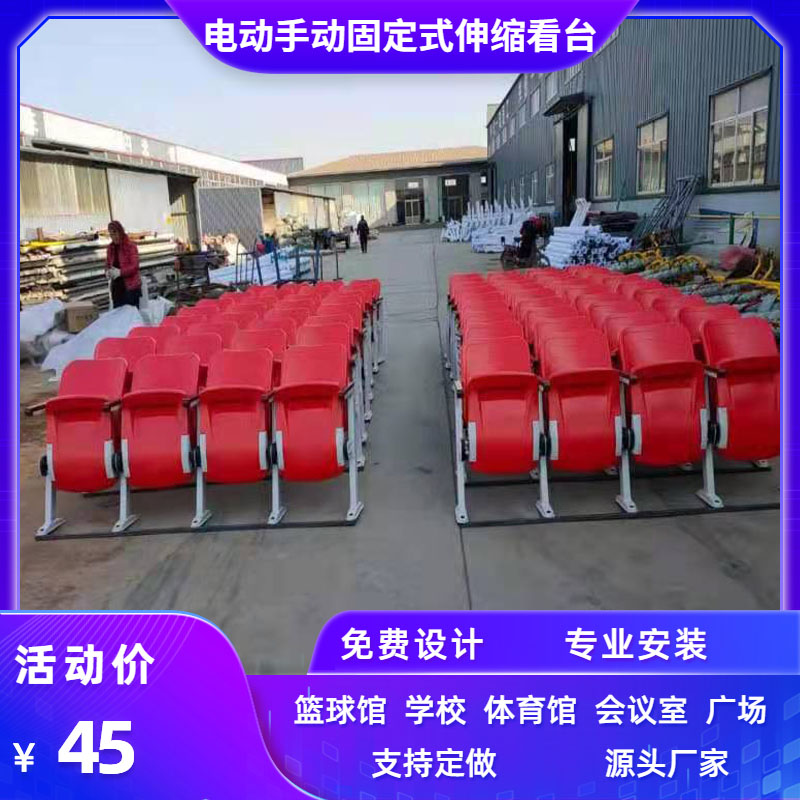 座椅靠背可折叠,由手动控制座椅的折叠翻起,操作简单。 活动看台可视场馆内使用场合的不同,来宾多少的而任意改变,充分利用了现有场馆的可适用范围,减少了基本建设投资,提高了场馆的使用效率,达到一馆多用、多功能的目的。