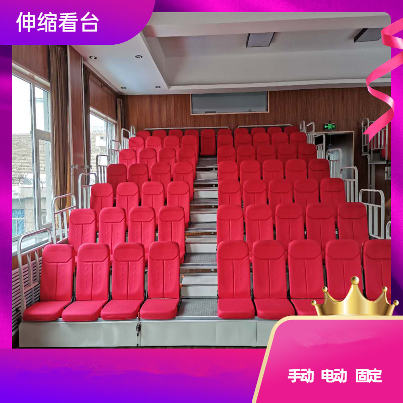 一种是电动活动伸缩的看台,它是有电机带动整体传动移动,二种是手动活动式,它的伸缩活动是靠手动推动来折叠伸缩的。
