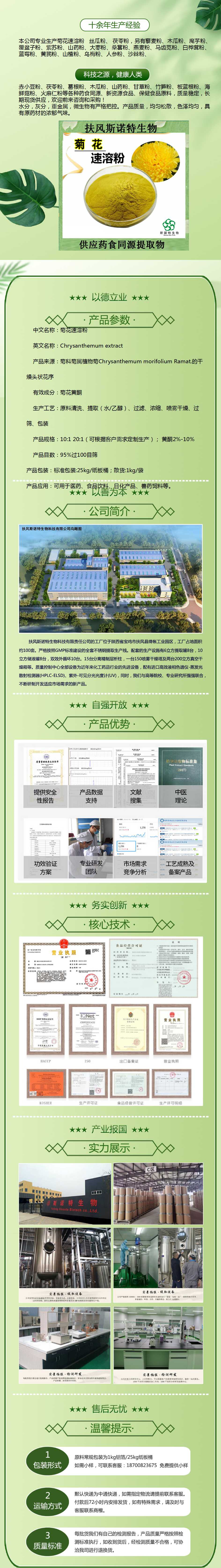 【产品规格】菊花黄酮5%,可根据客户要求定制生产