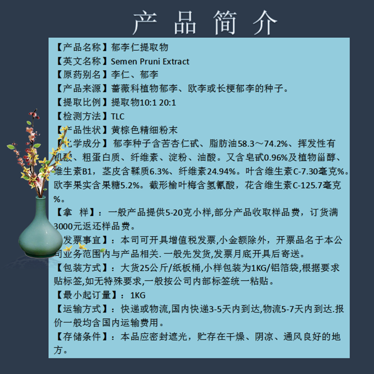 郁李仁浓缩粉 固体饮料原料 郁李仁提取物 水溶性小李仁粉