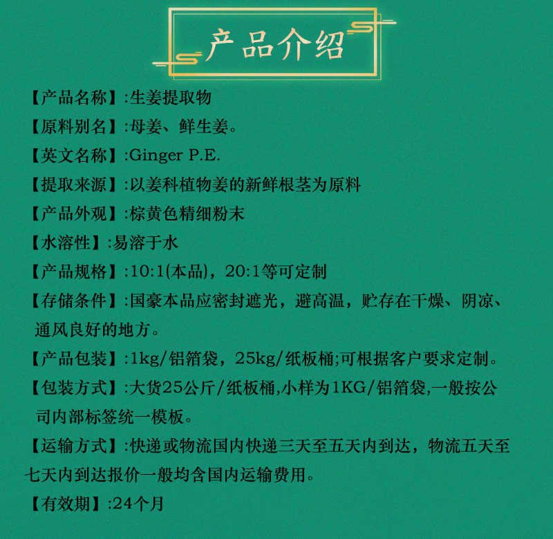 生姜提取物10:1 水溶性生姜粉 含姜辣素生姜粉 生产