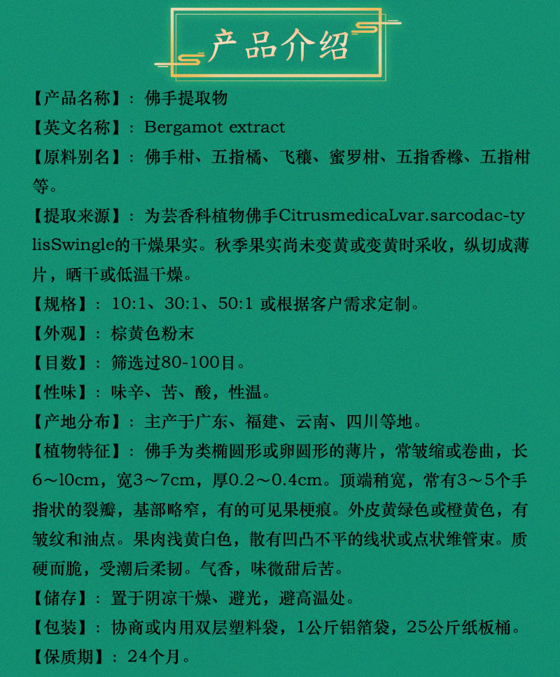 佛手粉 10:1 佛手柑提取物 佛手果提取物 水溶性斯诺特 可定制