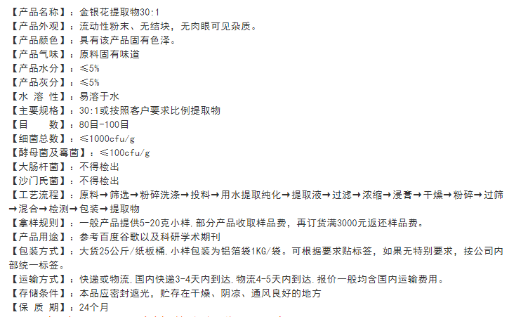 SC工厂 金银花提取物10:1 金银花粉 绿原酸 80目棕色粉末 斯诺特