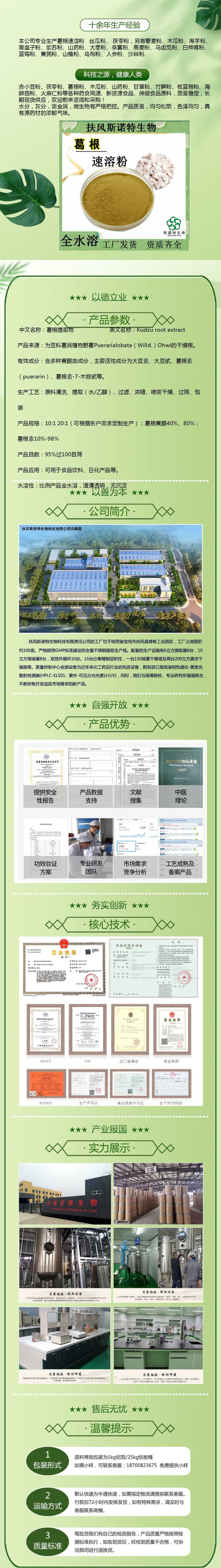 我厂大量生产提取物原料,采用高质量原材料进行生产。每个生产流程都严格把控,再确保每样产品都是合格后,方可出厂销售!客户的满意,就是我们一贯的追求!