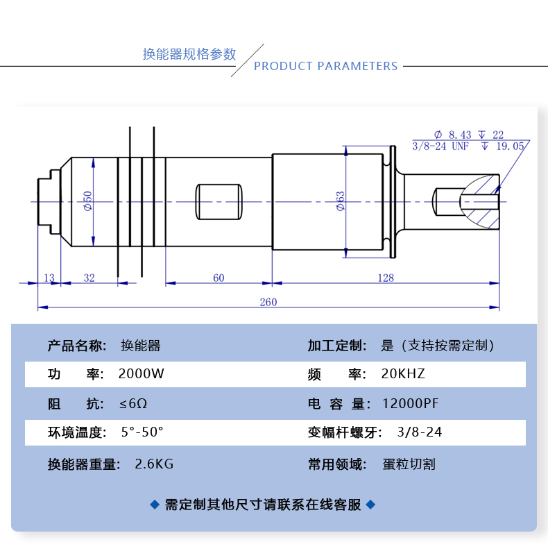 浙江大威超声波20K2000W蛋糕食品切割换能器 超音波换能器