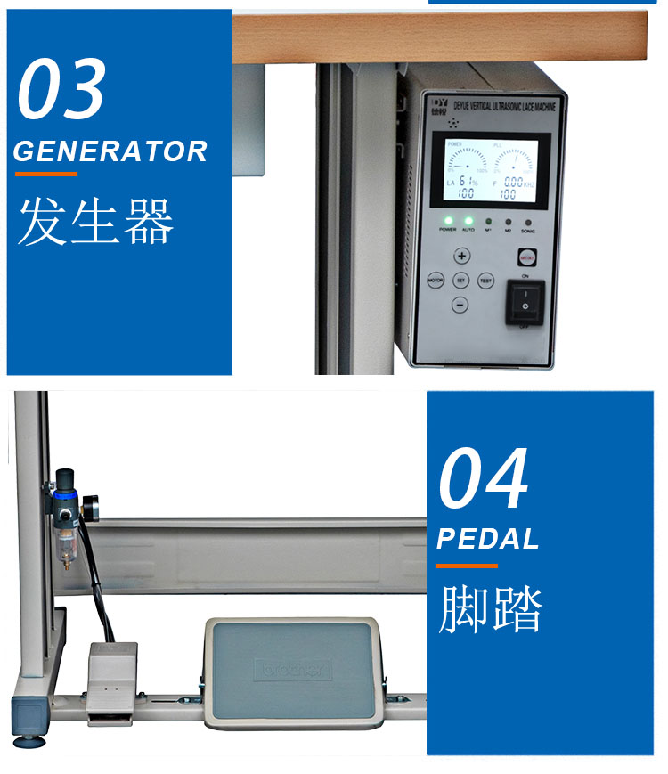 大威DEVEY超声波缝合机主要应用医用防护服,居家服装,包装制袋,纸尿裤卫生巾。。。等产品无缝焊接缝制压边,可搭配不同超声波模具,实现不同压边缝制花型,实现超声波花边机功能,让产品缝合更好看美观。