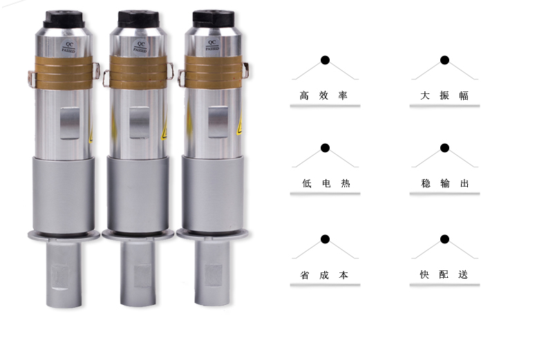20k2000w超声波换能器,自主研发研发的压电陶片,结合航空铝材配件,采用国际先进的仿真技术结合自主研发的高精度装配仪器精致而成,从源头技术开始研发生产,保证了换能器产品和应用技术参数的稳定性;搭载不同的发生器和模具焊头,可以适用不同的超声波设备...