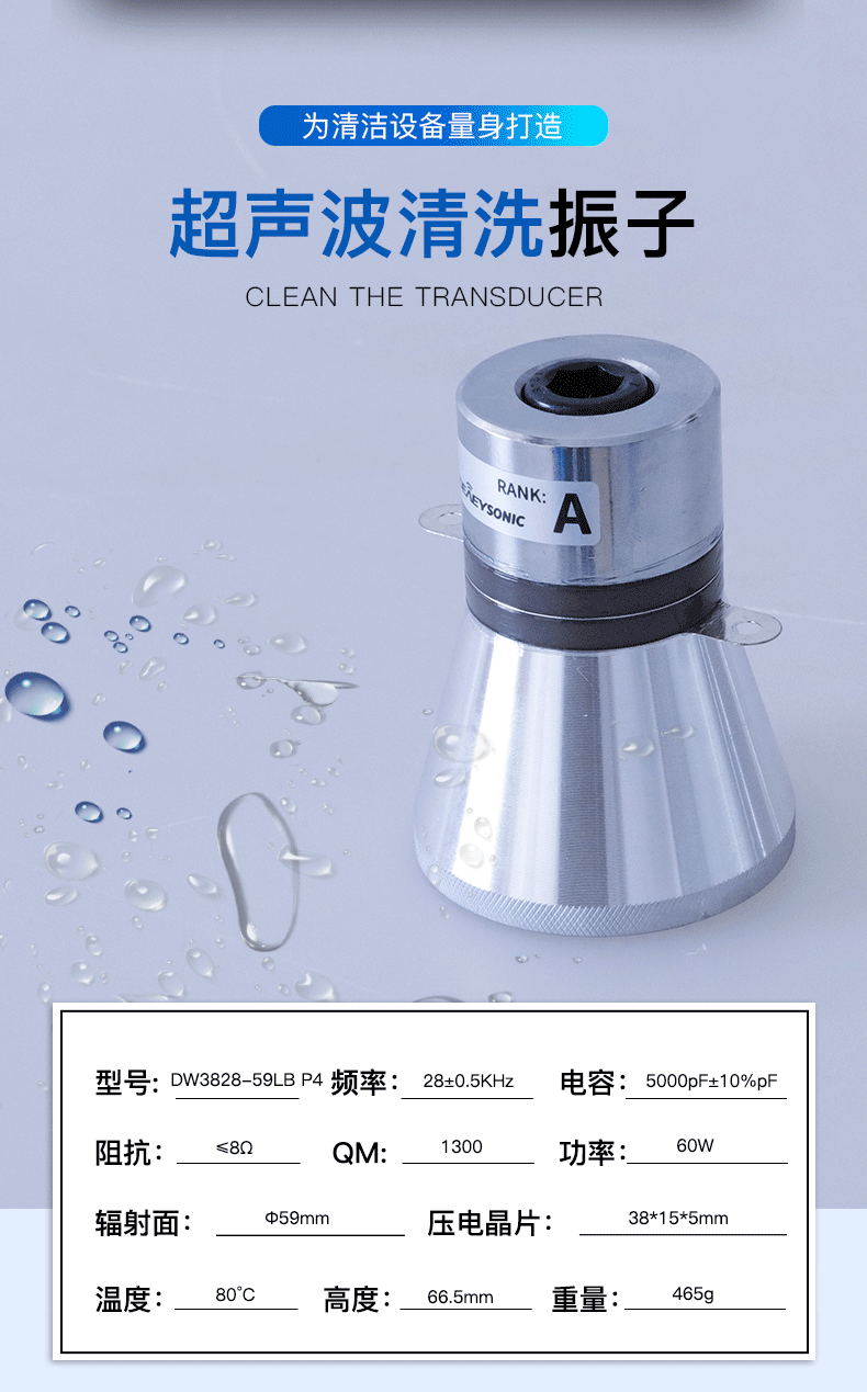 超声波清洗机换能器是一种能量转换器件,它的功能是将输入的电功率转换成机械功率(即超声波)再传递出去,而它自身消耗掉很少的一部分功率(小于10%)。所以,使用超声波换能器最应考虑的问题就是与输入输出端的匹配,其次是机械安装和配合尺寸。市面上超声波机械种类繁多,客户必须提供准确可靠的指标,才能保证公司提供的换能器产品能与贵公司的机器良好匹配,发挥性能。