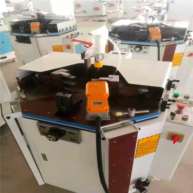该机是高等铝门窗生产专用设备,适用于角码结构型铝门窗90°角连接,采用了机械联动新结构,是组角完全同步,定位采用了上下可调,适用于加工不同断面形状和尺寸的型材。