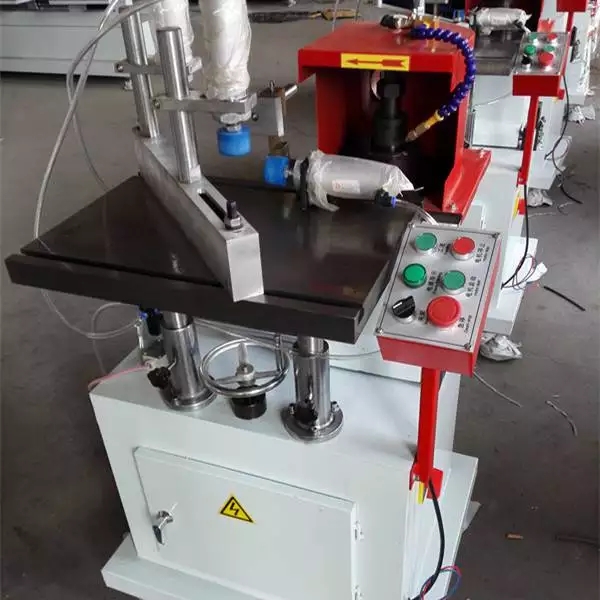 2.铝门窗组角机,该机是铝门窗生产专项使用设备,适用于角码结构型铝门窗90°角连接,采用了机械联动新结构,是组角完全同步,定位采用了上下可调,适用于加工不同断面形状和尺寸的型材。