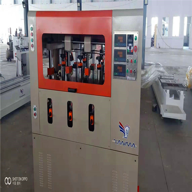 该机是高等铝门窗生产专用设备,适用于角码结构型铝门窗90°角连接,采用了机械联动新结构,是组角完全同步,定位采用了上下可调,适用于加工不同断面形状和尺寸的型材。