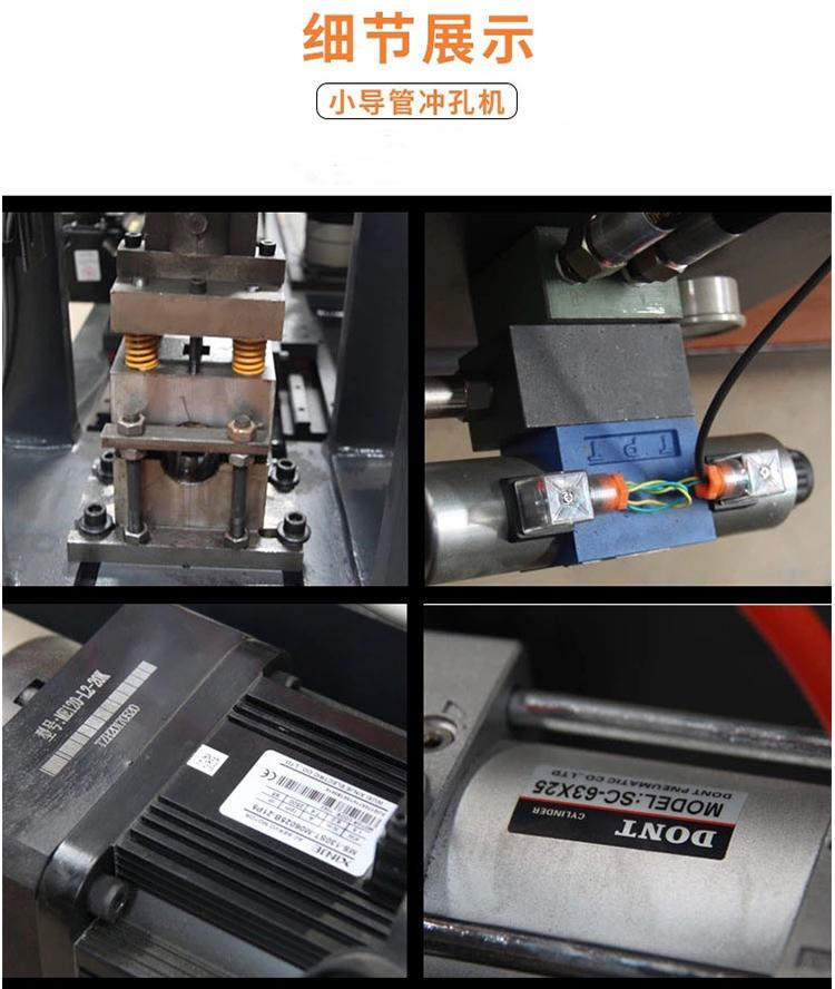 小导管冲孔机冲孔效果超前小导管冲孔机于隧道超前支护小导管自动化冲孔加工,在制造和设计工艺上采用了数控技术,智能化程度有了很大的提高,操作上通过控制系统触摸屏进行设置,只需简单的输入孔距等参数,就能。小导管冲孔机展示小导管冲孔机采用原装进口德国施耐德伺服电机和控制系统、由我厂独立研发的全数字信处理系统和操作系统控制。小导管冲孔机伺服电机采用触屏显示及操作界面,更简易进行数据操作(任意输入多组孔距、孔数)。小导管冲孔机PLC控制界面于全自动数控冲孔机械,模具采用独特设计方式,主要部件为的进口材料制作、套管轴承导向、工件由带轴承托板支撑保证工件水平、有效保护模具、增强寿命、使工件冲孔顺畅、无毛刺、无刮痕.边坡支护小导管冲孔机 精恒超前小导管打眼机价格